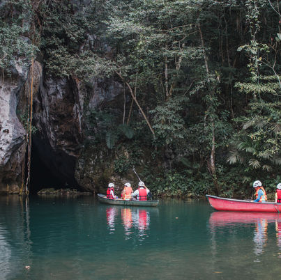 The Barton Creek cave tour is usually halfday (lasting 4 to 5 hours) , so you can choose to go early in the morning or after lunch. Departing from San Ignacio, we take a right off the western highway in Georgeville heading towards the mountains, driving under the jungle canopy, through a small creek and on to the property. Your guide will hand out gear (a life jacket and helmet with lights), a canoe and give you a short briefing of the cave and what to expect. Once inside the cave, you get to turn on your headlights for this unique experience. Enjoy the fresh cool smell of the cave while paddling into cathedral-like chambers with century old stalactites and stalagmites all around. About a mile in, you'll get to see artifacts and human remains on 10 ledges along the cave. Your guide will give you a full history about these amazing findings and explain more about the mayans and their way of life. If you want to see further into the cave, and if you are a true explorer; you can swim through passages and go explore where most travelers haven't been before (with a guide). After the tour, you can choose to swim in the area at the mouth of the cave, or simply relax in the cool jungle atmosphere.